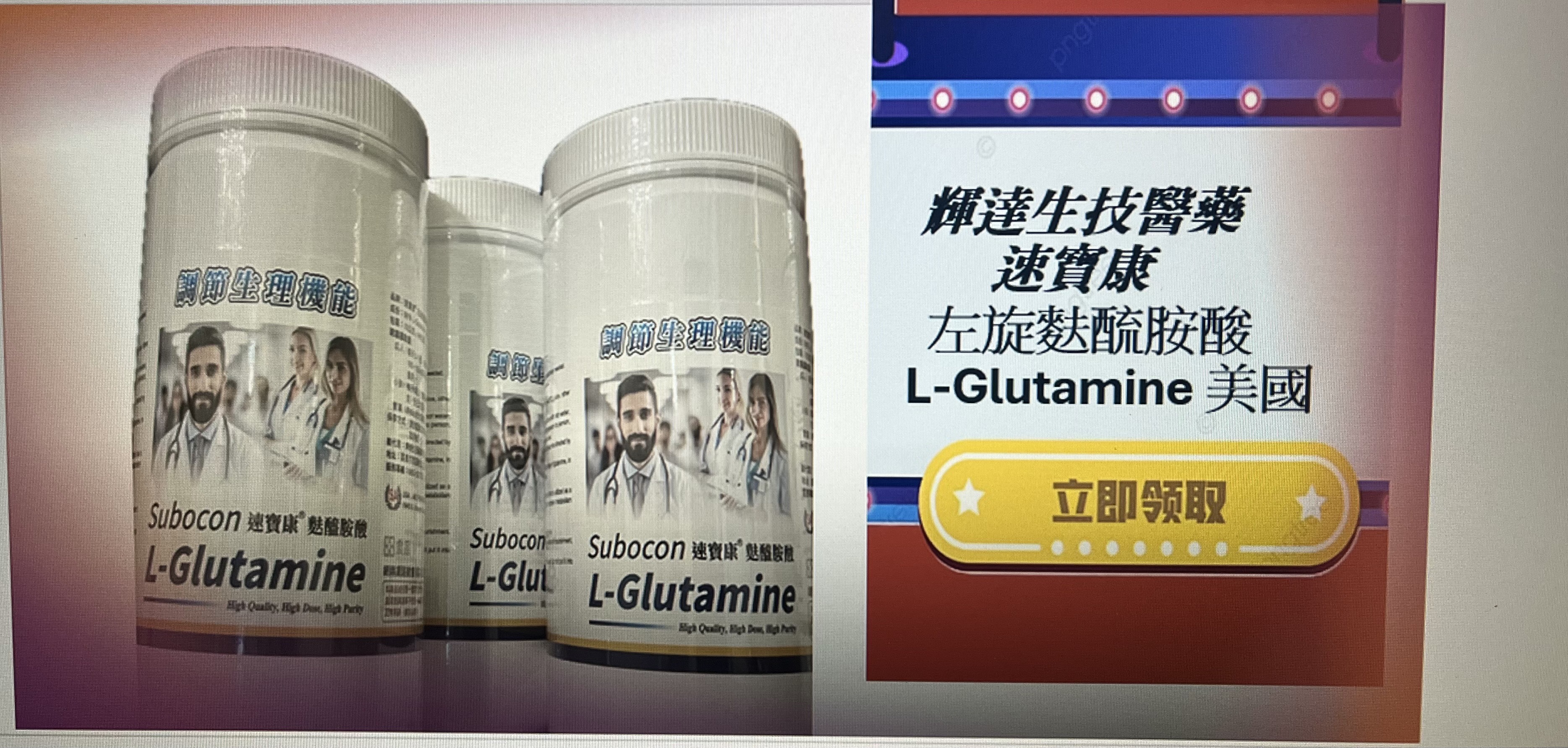 • 高純度、高品質的「左旋麩醯胺酸」。